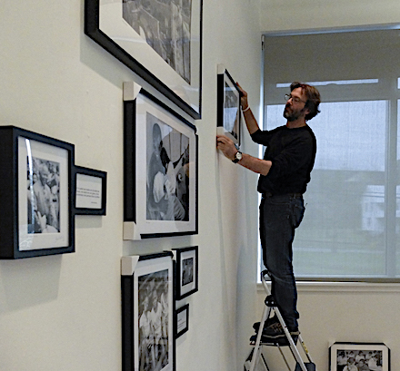Jim Loring hangs one of the photos from his exhibit. (Photo/Tabitha Ford)