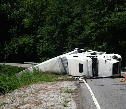 There were traffic delays but, fortunately, no injuries on Sunday when a tractor trailer overturned on Georgia Highway 75 north of Helen.