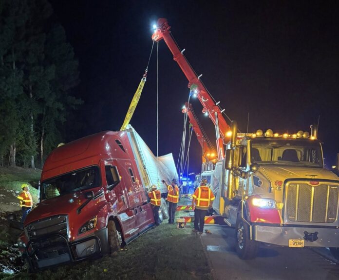 An early morning crash on I-85 in Franklin County caused quite a mess Thursday. Pictures from the scene show crews uprighting a tractor-trailer that officials said collided with a crane.