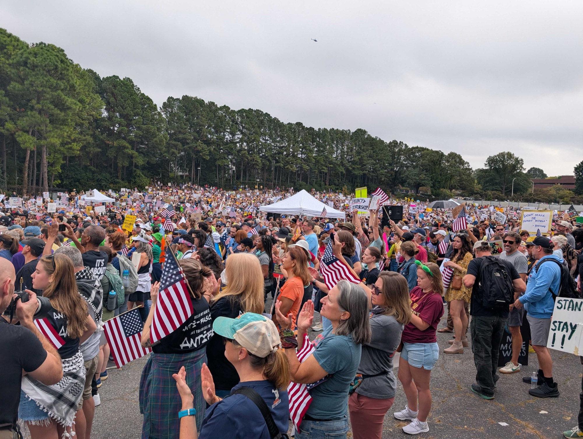 Thousands upon thousands showed up for the second organized No Kings day in America’s largest cities like Atlanta, New York City and Chicago, to smaller metro areas and towns including Greensburg, Pennsylvania; Bismarck, North Dakota; and Hammond, Louisiana. More than 2,600 nonviolent demonstrations were planned. Organizers estimate 7 million people turned out for events nationwide—2 million more than in June. There were also demonstrations in cities across Europe.