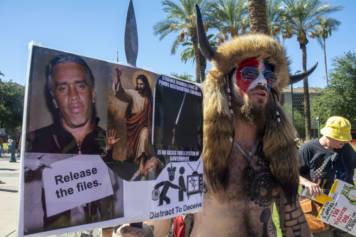 Jacob Chansley, known to most as the “Q Shaman,” spoke to the Arizona Mirror about why he was at Saturday’s No Kings event at the state capitol in Phoenix.