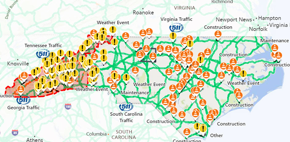 “All roads in Western NC should be considered closed,” shared NCDOT along with a map to show how dire the situation is.