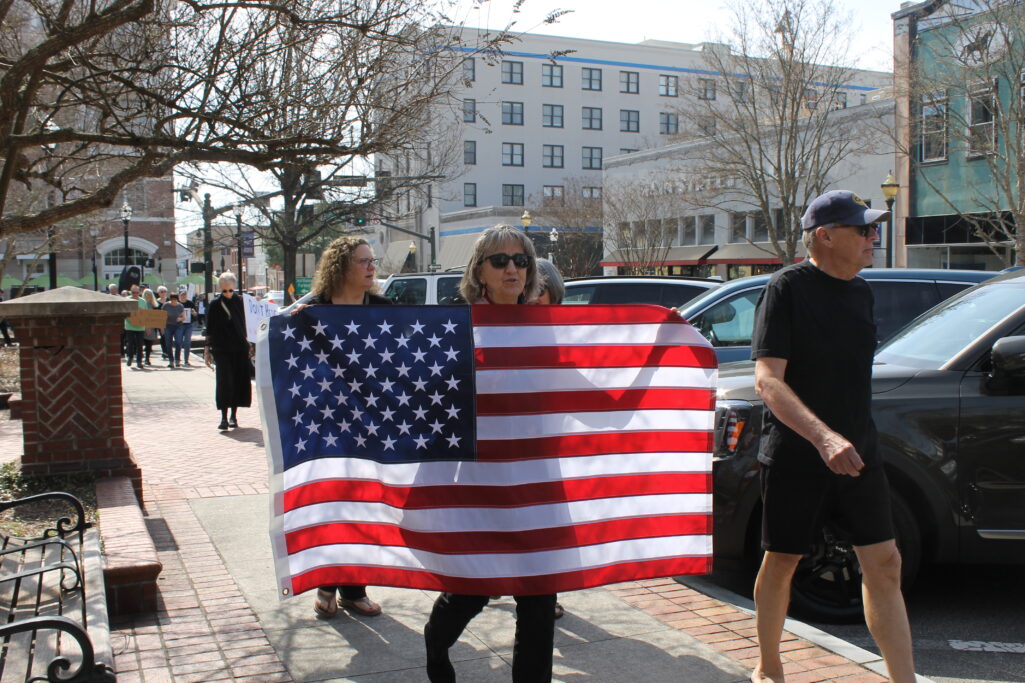 North Georgians protest federal cuts on the square in Gainesville Friday, March 14 (Brian Wellmeier/Now Habersham)