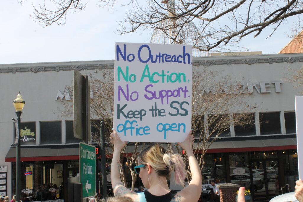 Susan Demora traveled from Fannin County to Gainesville to participate in the protest. Demora said that while there is an office near Blue Ridge, it has limited resources and she’s often sent to the location in Gainesville.