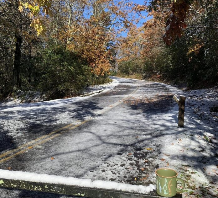 It wasn’t much, but it was enough to pause shuttle service to the summit Monday morning. Park officials shared photos on social media and warned visitors about icy road conditions.