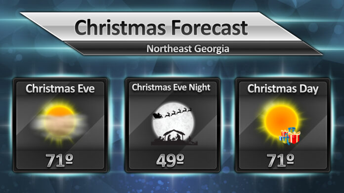 Christmas Eve is expected to feature some clouds as a weak upper level system slides just to our north. No rain is expected, and skies will clear late Christmas Eve. Highs on Wednesday will soar into the mid/upper-60s in the mountains and low-70s for the warmer spots. Some record highs will likely be broken.