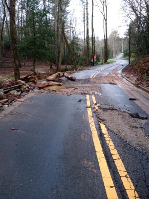 Farther north, in Union County, part of State Route 180 near Vogel State Park had to be closed after the shoulder of the road collapsed due to heavy rain.