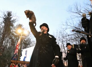Punxsutawney Phil prepares to issue his Groundhog Day weather verdict from Gobbler’s Knob