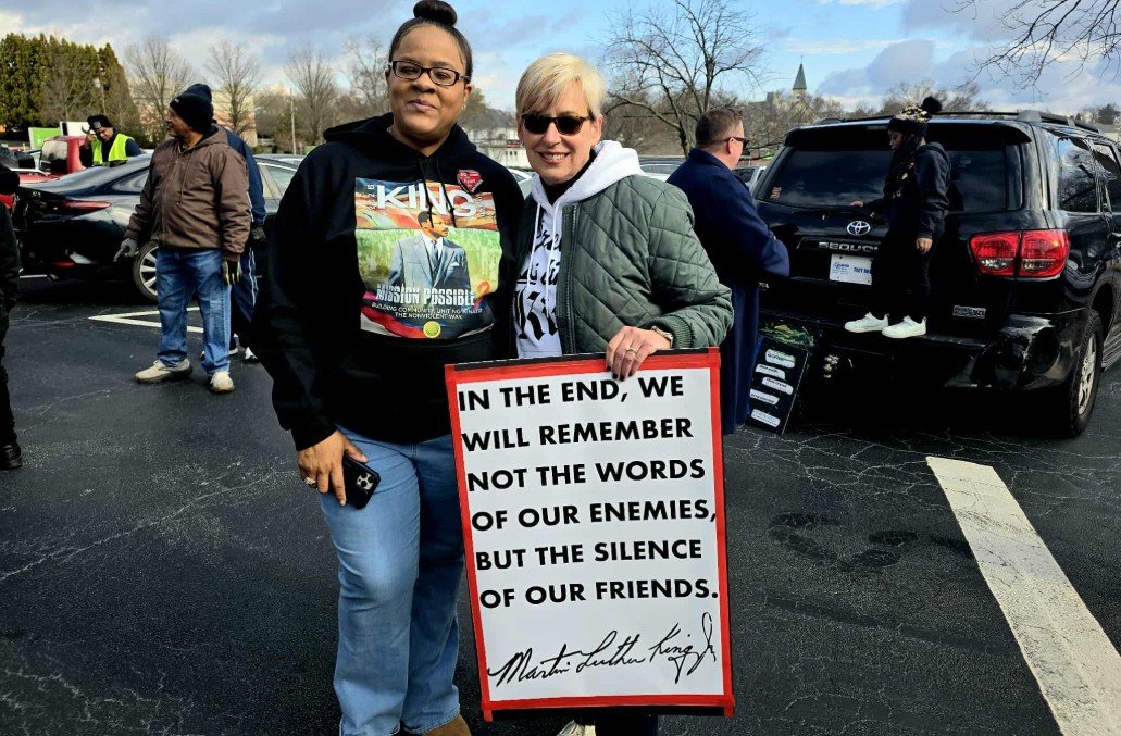 Melody, the primary host of the Martin Luther King Jr. Day program, stands with Michelle of the Newtown Florist Club, which helped organize King Week events and highlighted the community’s history and ongoing work for justice. (Carly McCurry / Now Habersham)