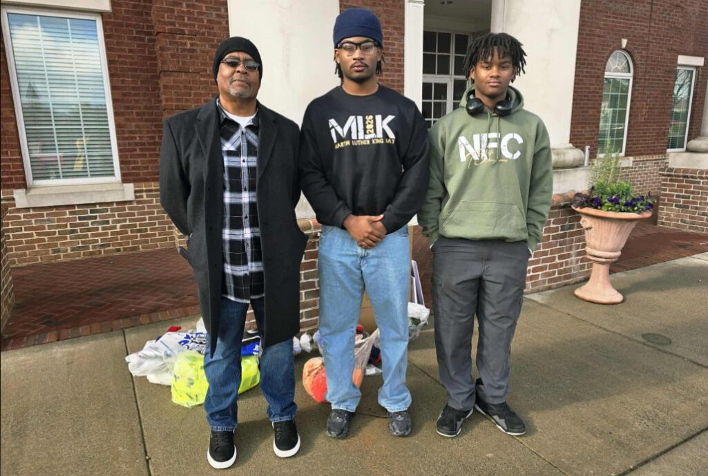 From left, Roger Buffington stands with Brian Gladmon and Trey during the Martin Luther King Jr. Day events in downtown Gainesville. Buffington, a longtime participant, attended with members of Bright Youth. (Carly McCurry / Now Habersham)