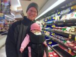 7-month old Ayla is all bundled up, grocery shopping with her dad during the winter...