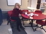 South State Bank Teller Susan Cook sits with her personal...
