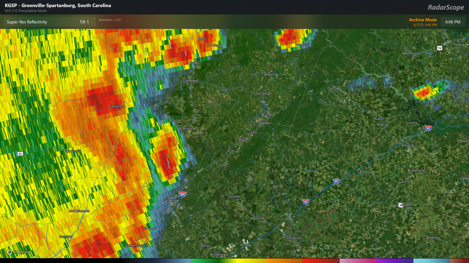 The line continued east-northeast into Hall and Banks Counties. No official survey was done, but radar and damage reports suggest this line continued to produce occasional gusts of up to 80MPH before it eventually weakened as it moved across Northern Stephens and Southern Habersham County. This line was responsible for the fatality that occurred in Banks County, as well as the damage that occurred locally along the Mud Creek Road area.