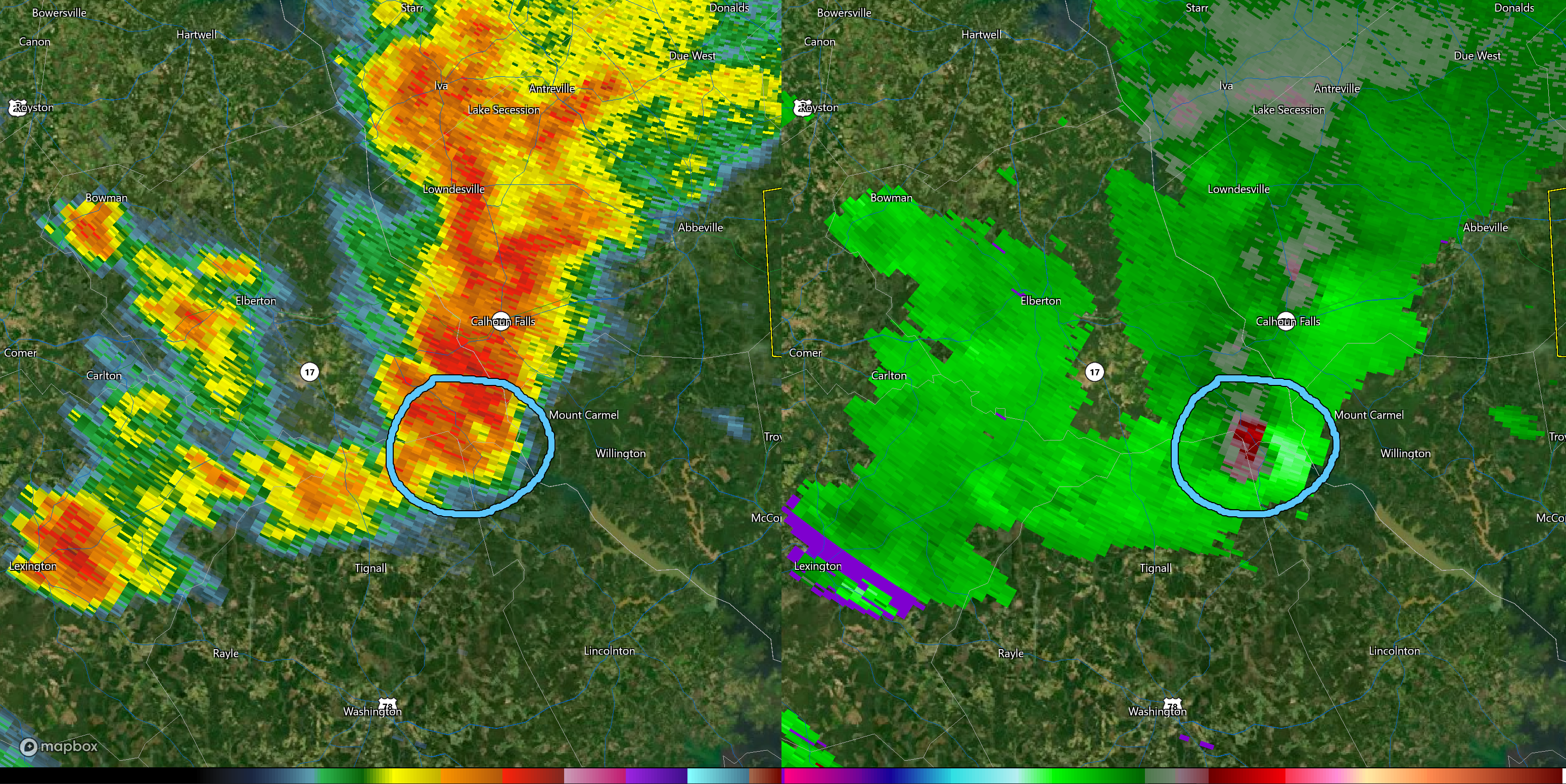 The NWS in Greenville confirmed an EF-1 tornado touched down in Bobby Brown State Park on Monday evening. The tornado touched down at 7:01PM and reached a maximum intensity of 105MPH, downing dozens of trees through the state park and also damaging some pavilions. Additional damage was noted across the SC line in McCormick County. The total path length is unknown due to lack of roads on the SC side, but the tornado traveled at least 0.96 miles and was 200 yards wide at its widest point.