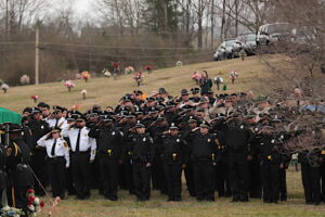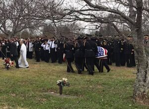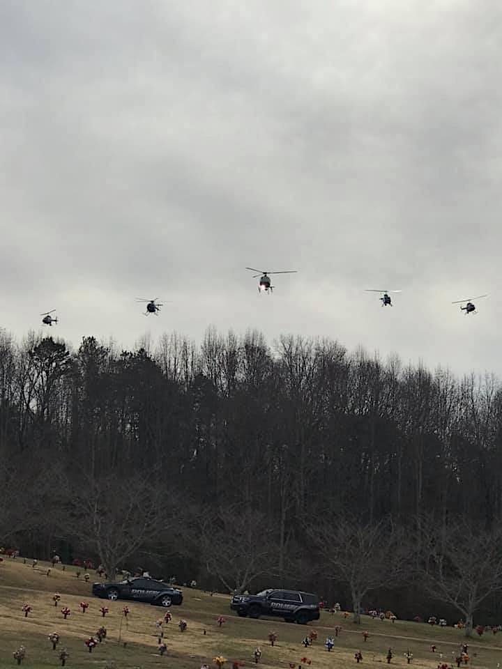 Flores was buried at Yonah Memorial Gardens following the second service today at Prince of Peace Catholic Church in Flowery Branch. Helicopters hovered overhead and scores of police officers saluted in tribute to the fallen officer as his casket was carried to its final resting place.