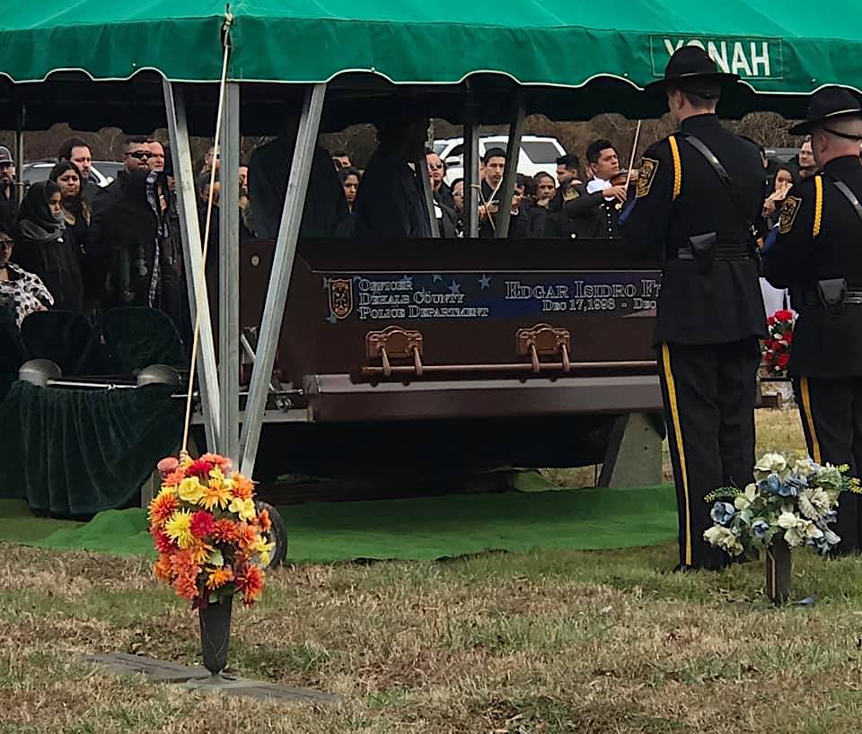 Slain Dekalb County Police Officer Edgar Flores was buried today in Demorest, two days after what would have been his 25th birthday.