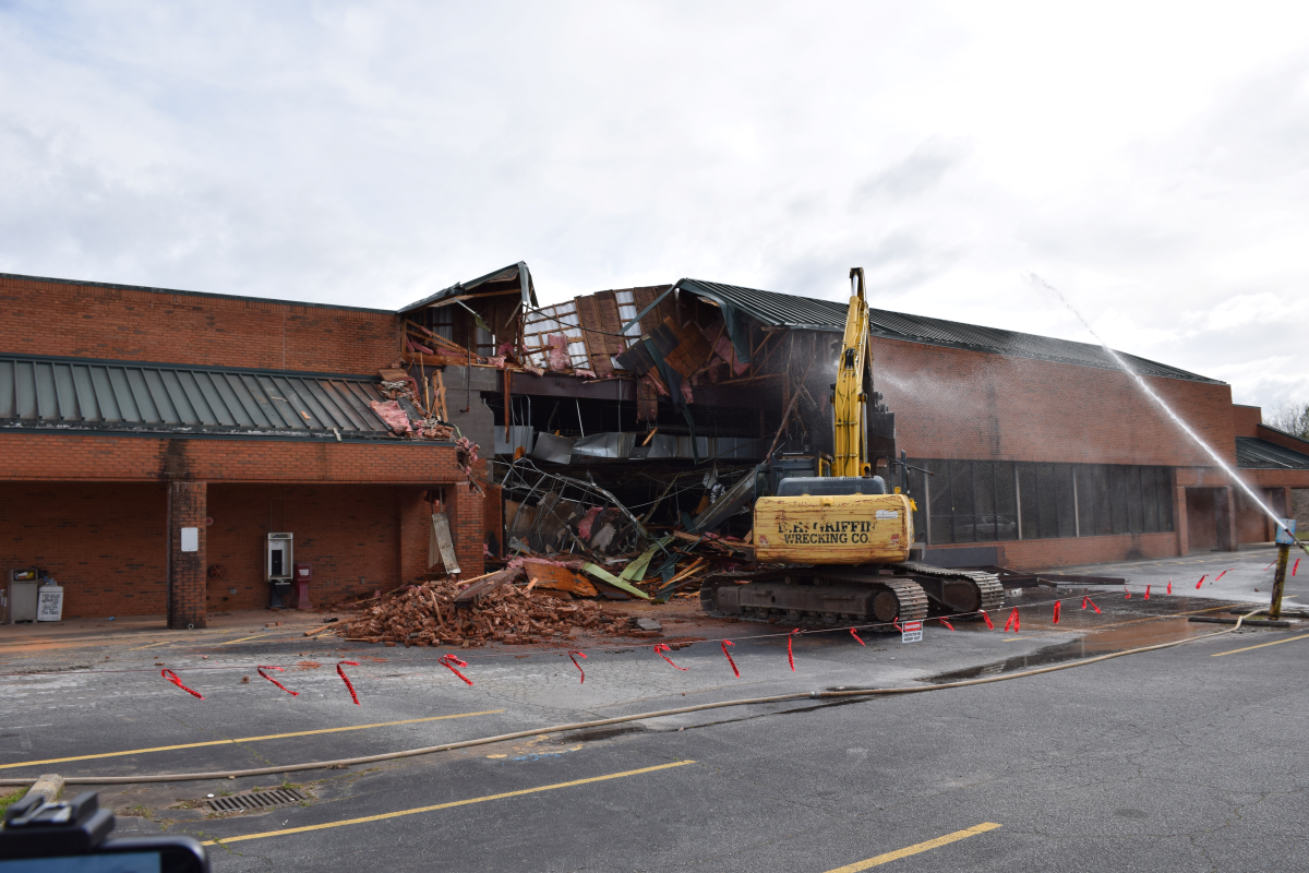 After sitting vacant for over a decade, the old Clarkesville Ingles building is finally coming down. Late Monday morning, March 25, crews from D. H. Griffin Wrecking Company of Atlanta arrived and began clearing the building on West Louise Street.