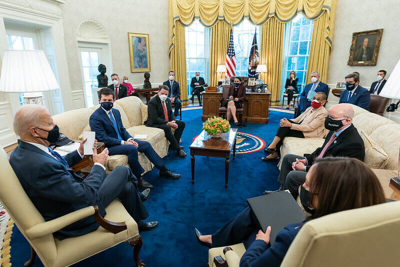 “Historically, infrastructure had been a bipartisan undertaking, often led by Republicans,” Biden said, pointing to President Abraham Lincoln’s role in building the transcontinental railroad and President Dwight Eisenhower’s leadership in the construction of interstate highways. “So there’s no reason why it can’t be bipartisan,” Biden said. “The divisions of the moment shouldn’t stop us from doing the right things for the future.”