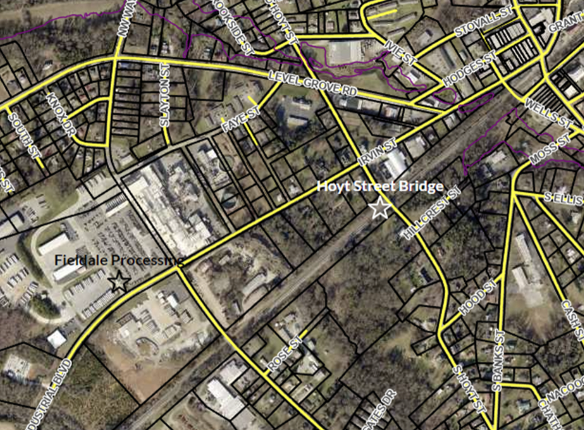 The aging bridge currently has a maximum weight rating of 15 tons. It’s constructed with steel girders and timber supports. Over time, the weight limit has decreased. Historically, the bridge has been used as a cut-through between South Main and Irvin streets.