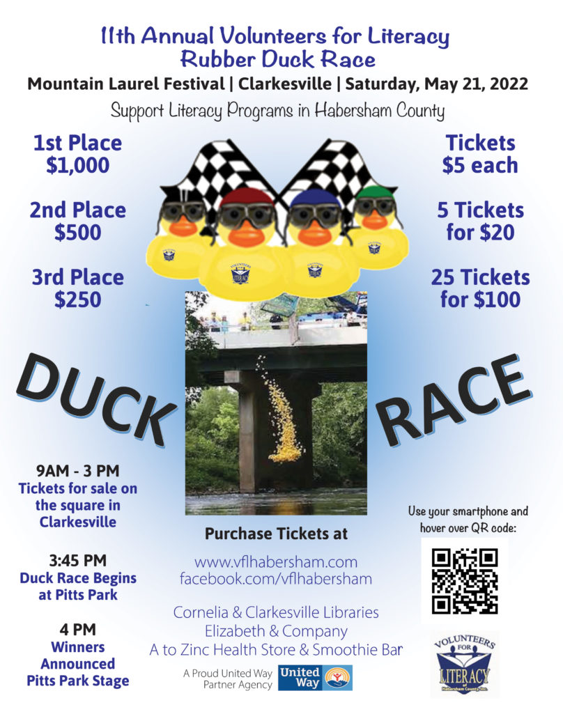 The date is fast approaching when the Soque River at Pitts Park will again play host to hundreds of yellow rubber ducks swimming for cash. The 11th annual VFL Duck Race will be held during Clarkesville’s Mountain Laurel Festival on Saturday, May 21. Entrants have a chance to win cash prizes of $1,000, $500, or $250.