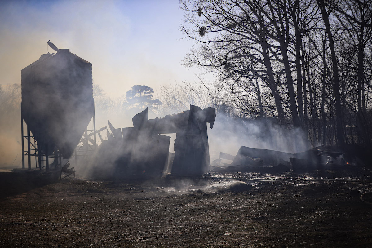 The fire spread around 5 acres, Nichols says, and burnt down the barn that housed cows and pigs. The animals were safely removed with the help of firefighters and the property owner, and thankfully, no one was hurt.