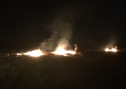 A smoldering cigarette lay in the road near the scene. It’s unclear at this time as to exactly what started the fires or whether they were intentionally set.