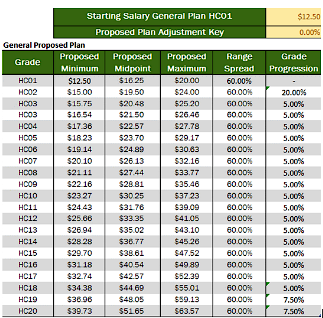 • General Plan with a starting pay of $12.50 an increase of 24.6%