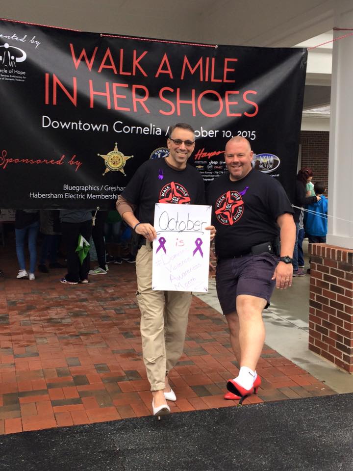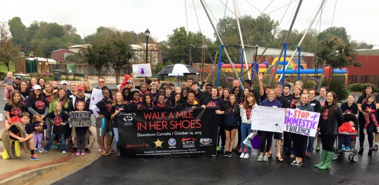 The Big Red Apple festival may have ended early Saturday because of the rain but at least things got off on the right foot. Literally. A good sized crowd turned out in downtown Cornelia on October 10 to Walk A Mile In Her Shoes.