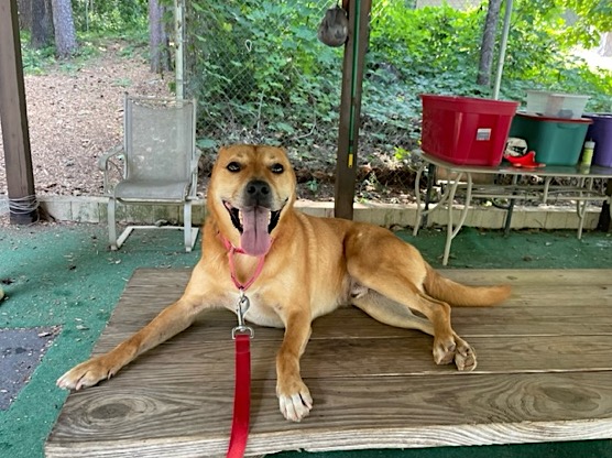 Adam relaxing at the Habersham County Animal Shelter play yard in Clarkesville. (photo by Habersham County Animal Care and Control)