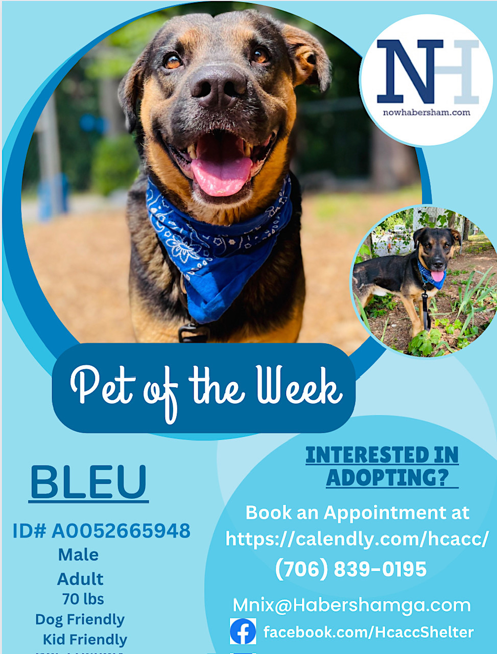 Click here to make an appointment to meet Bleu at the Habersham County Animal Shelter. The shelter is located at 4231 Toccoa Highway in Clarkesville, Georgia.