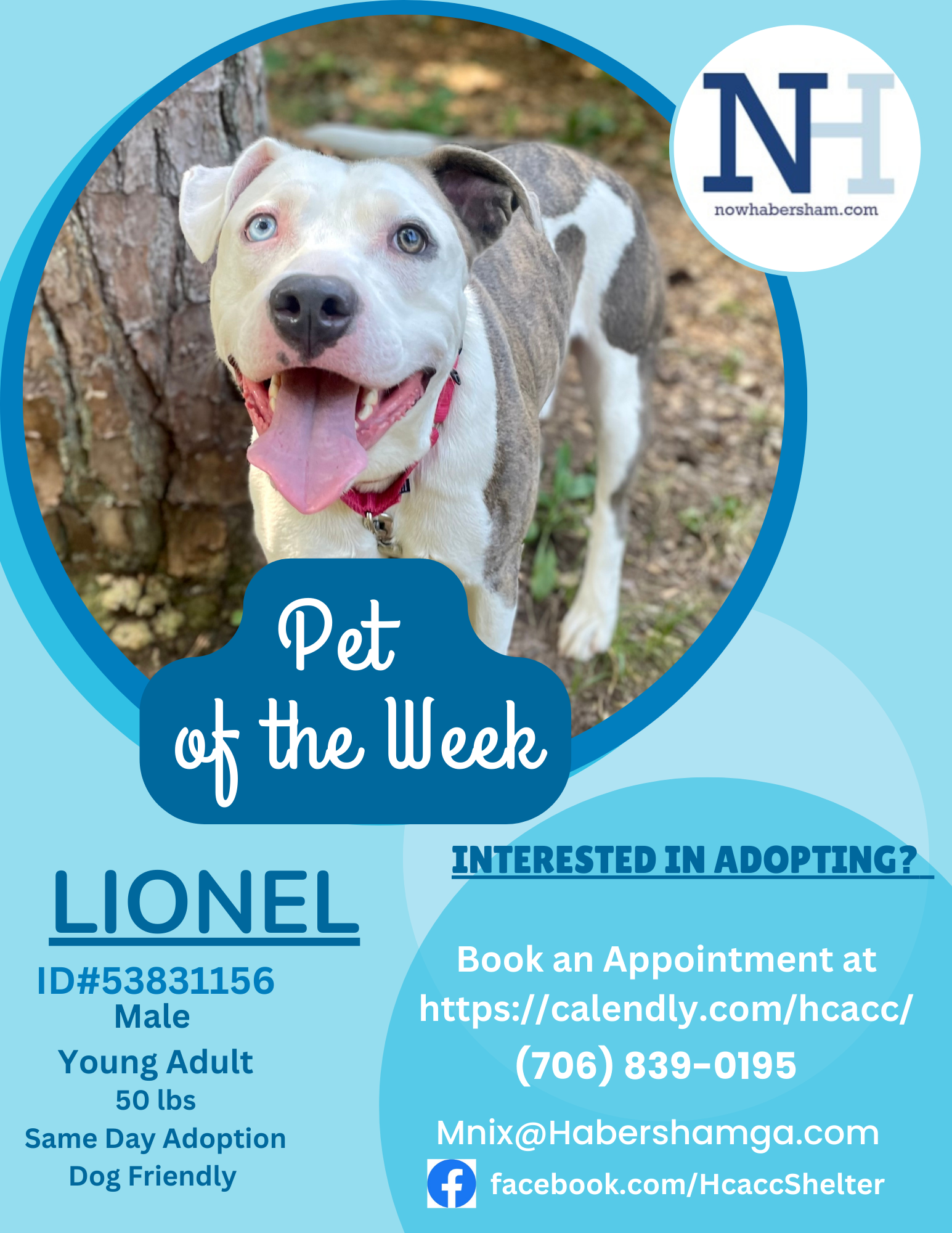 Can you believe it? I ended up in the Habersham County Animal Shelter as a stray. It’s a bit puzzling since I was brought in with my white fur super clean and smelling lovely. We thought someone would come looking for me, but alas, I’m still here, eagerly waiting to find my next family. 🐾