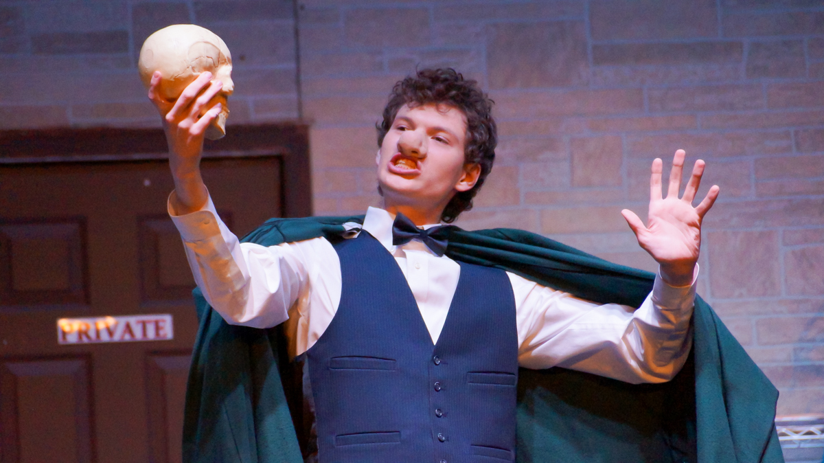 The audience will meet over-the-top characters, like Eugene (Jonathan Zeke Smith), a struggling actor who’s afraid to perform, Officer Task (Matthew Teutsch), an aspiring investigator with no observational skills, and Jayne Fryman (Katie Thompson), a reporter wearing too many hats and not enough pants, who will leave them laughing until the curtains close.