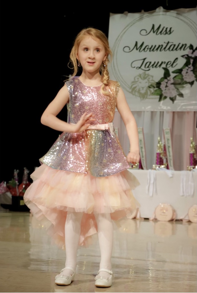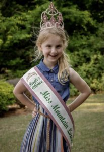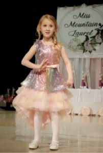 This year, Phoebe decided she wanted to participate in child beauty pageants. Her first was the Miss Mountain Laurel Festival Pageant in Clarkesville. While Phoebe often uses a cane to help her around unfamiliar places, she refused to cross the stage with one. She and Jessica both had a scare when they realized how short the stage was that the pageant participants would walk across. Without being able to try the stage out in advance, she worried about walking off the end of the stage without being able to see the stage’s edge. She managed to safely get across it.