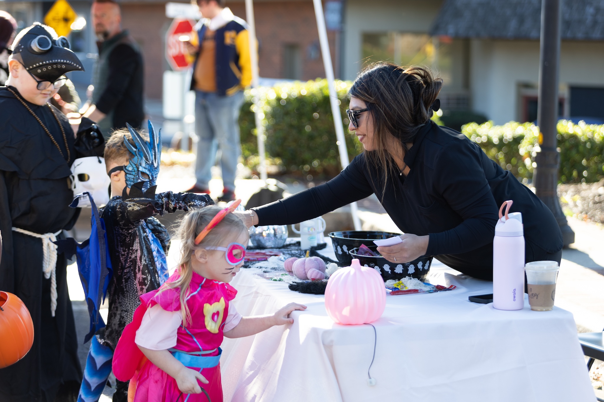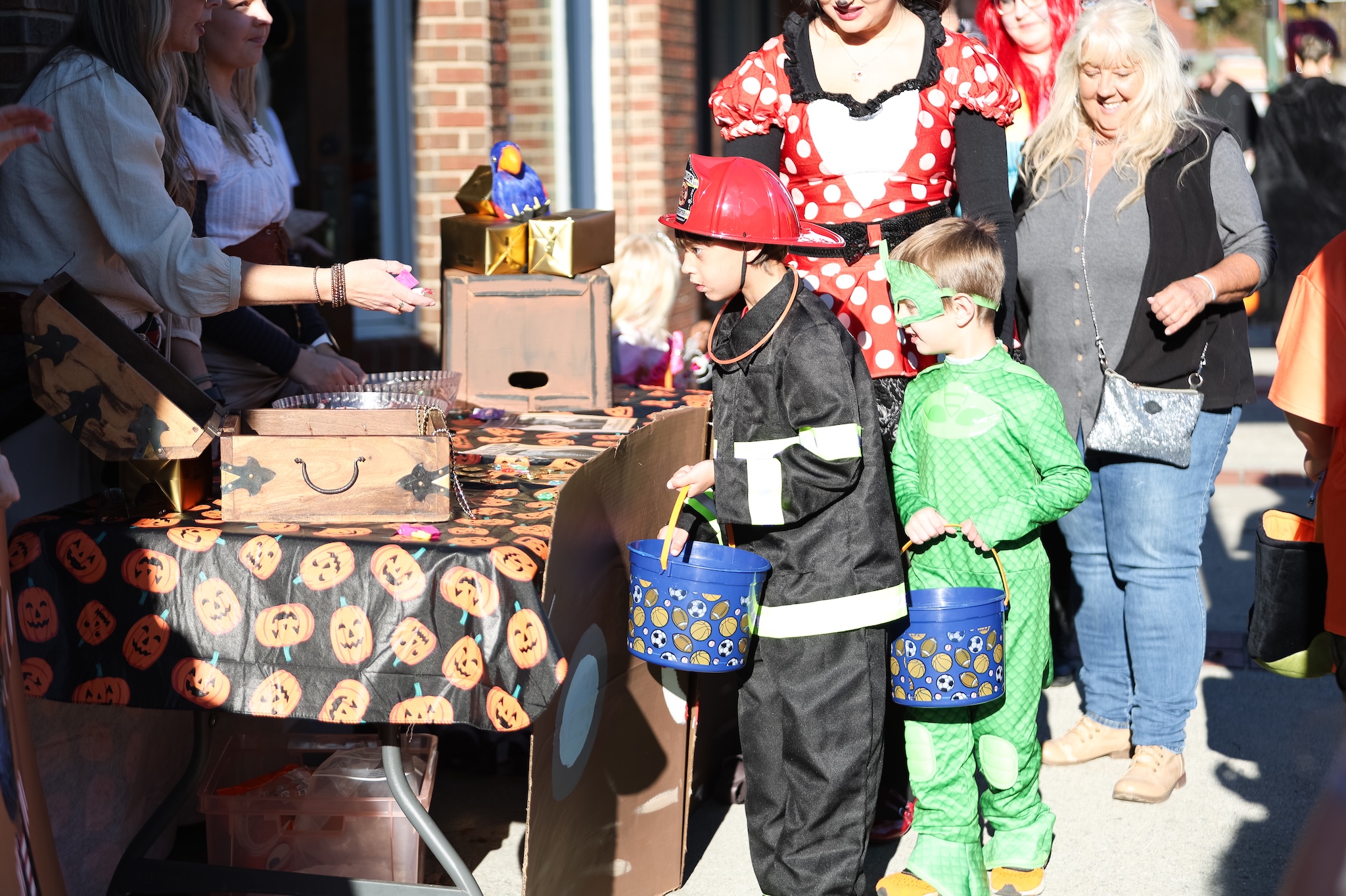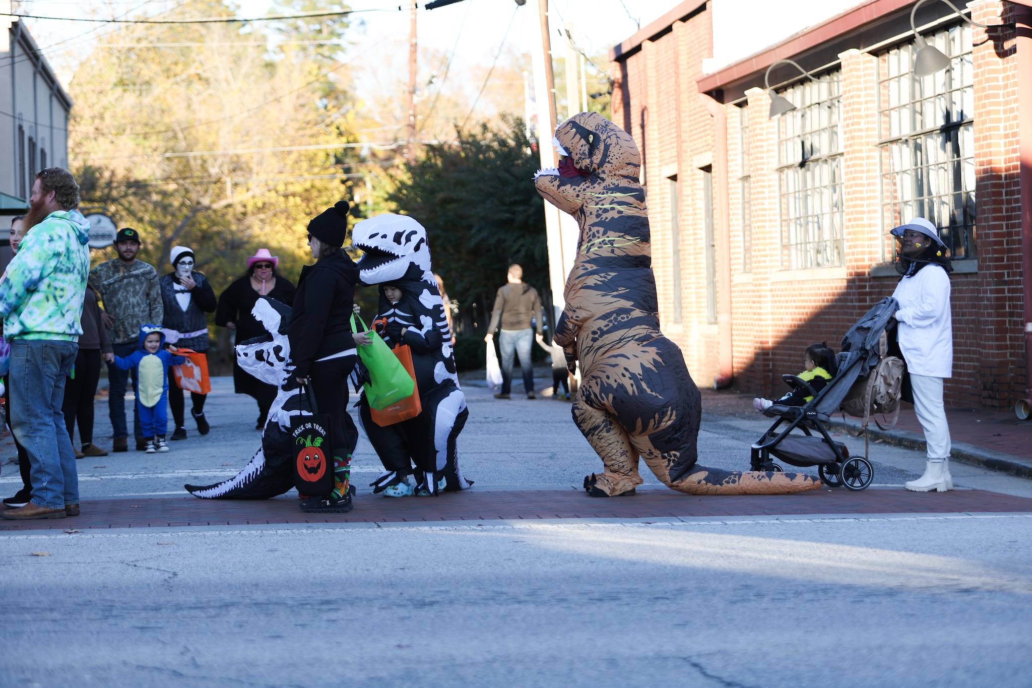 Bounce houses, a balloon artist, and face-painting added to the carnival-like atmosphere. Volunteers from the city and local groups passed out treats and coffee for chaperoning adults. The downtown area was blocked off to vehicular traffic to ensure children could roam safely.