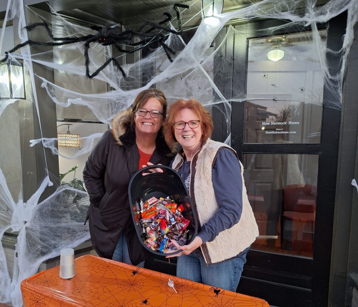 Now Habersham’s “candy team” poses with the last of the candy near the end of trick-or-treat on the downtown square. Looming overhead is our Halloween mascot, Harry Pider (named by 2-year-old Maple Camejo). We’re already looking forward to next year! (Joy Purcell/NowHabersham.com)Families patiently wait as the trick-or-treat line snakes its way around the downtown Clarkesville Square and business district on Friday, October 31, 2025. (Riley Moody/NowHabersham.com)From left to right: Rebecca, Ethan (minor), Belle (minor), Derek, Pictured Below: Cupcake (the dog) (was unable to get last names or accurate ages)Merchants passed out candy to the hundreds of children who turned out for the annual tradition. (Riley Moody/NowHabersham.com)(Riley Moody/NowHabersham.com)(Riley Moody/NowHabersham.com)(Riley Moody/NowHabersham.com)(Riley Moody/NowHabersham.com)The two dinos! White is Caleb Freeman (10), Brown is Jonathan MorganEven the dogs got into the act! (Riley Moody/NowHabersham.com)