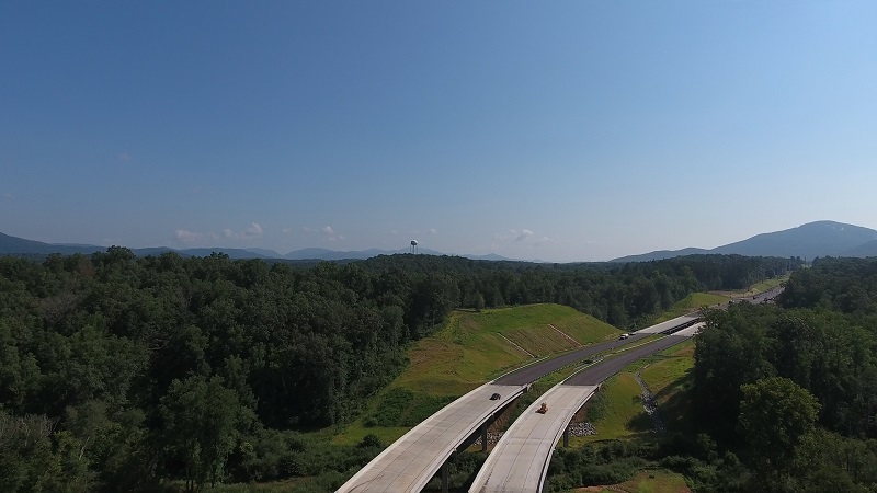 Aerial view of Appalachian Parkway/Hwy. 115 intersection where phase two of parkway begins. The parkway extension opens on Wednesday. (photo/Sam Owens)