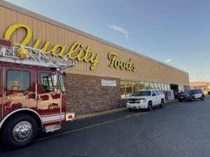 There were some nervous moments for shoppers at Quality Foods in Cornelia on Tuesday after a pickup truck ran into the front of the building.