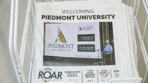 The university showed off new logos, an updated website, new signs and spirit wear for students that attended this afternoon’s events. The university also unveiled their “Piedmont Promise,” their dedication to student success.