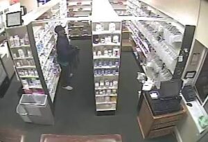 According to a release on the department’s Facebook page, officers were dispatched to the scene around 10:20 that night in response to an alarm. When they arrived they found the front door had been broken by a large rock that was thrown through the glass. The release states, “Inspection of the store video security footage revealed what appears to be a black male wearing blue jeans, navy blue jacket with a hood, green shirt and white tennis shoes enter the pharmacy through the broken glass door.”