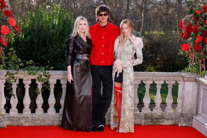 Director Emerald Fennell, from left, Jacob Elordi and Margot Robbie pose for photographers at the photo call for the film "Wuthering Heights" in London, Wednesday, Feb. 4, 2026. (Photo by Millie Turner/Invision/AP)