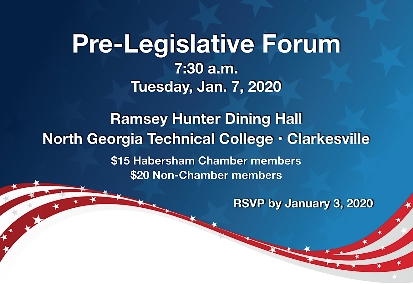 To reserve your space, contact the Chamber at president@habershamchamber.com or call 706-778-4654 no later than January 3.