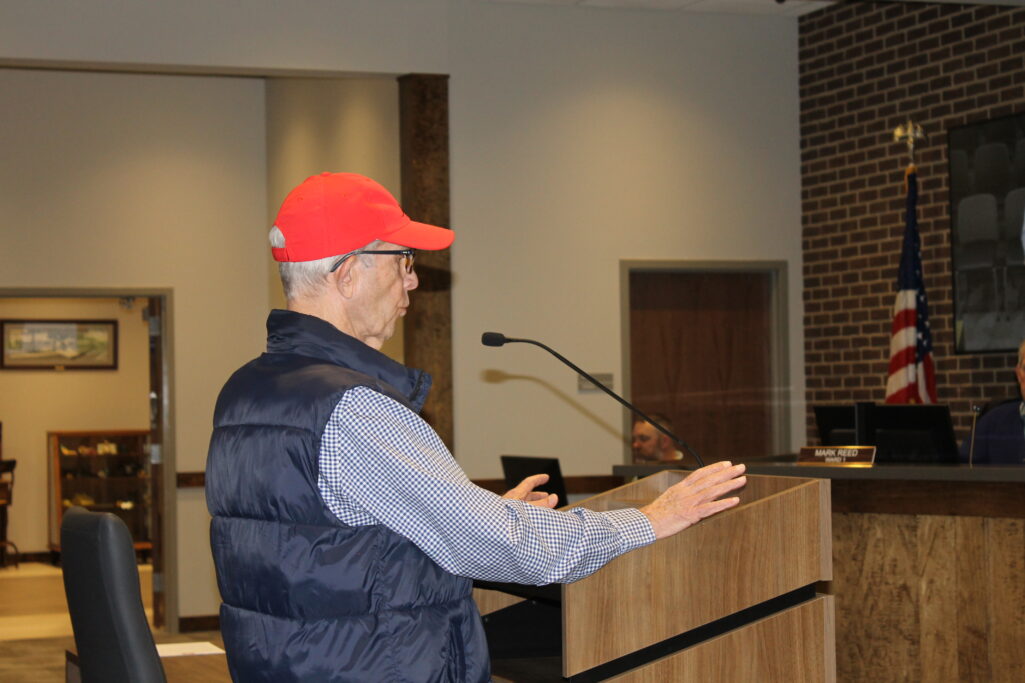 Blake Foster speaks to Cornelia commissioners during a regular meeting Tuesday, Dec. 3 (Brian Wellmeier/Now Habersham)