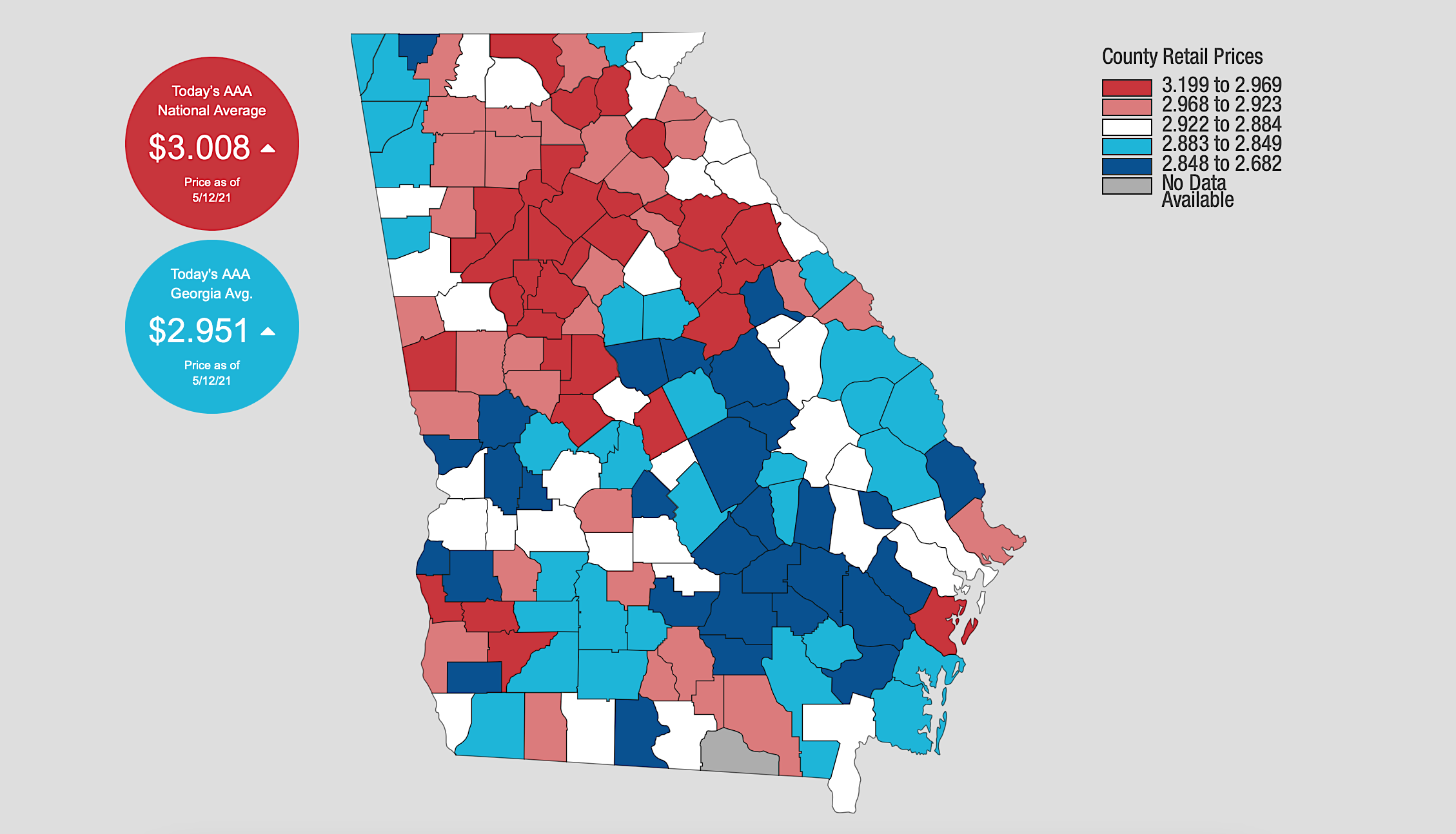 Georgia’s gas prices have risen by 24 cents. As of Wednesday, Georgia’s average price of a gallon of regular unleaded gas was $2.95, up from $2.71 one week ago.