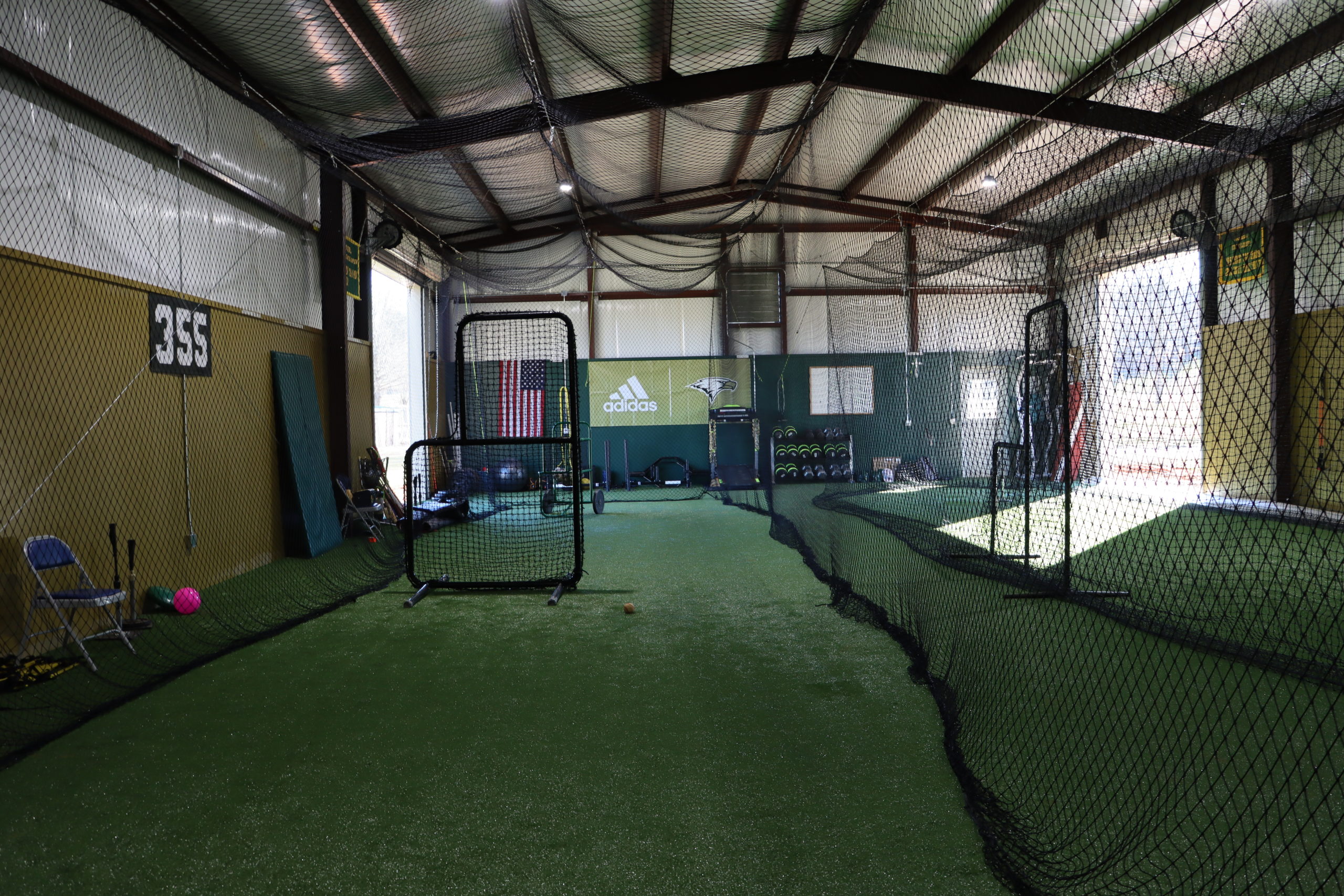 The completion of an indoor training facility continues a series of renovations to the baseball complex at Rabun Gap that also included field enhancements and new dugouts. The state-of-the-art training facility contains two 70-foot cages, weight-training and conditioning equipment, and a turf surface housed in a metal building along the home side of the field. Head Coach Clark Wright said the new training center will allow players to compete and stay healthy year-round in any weather conditions.