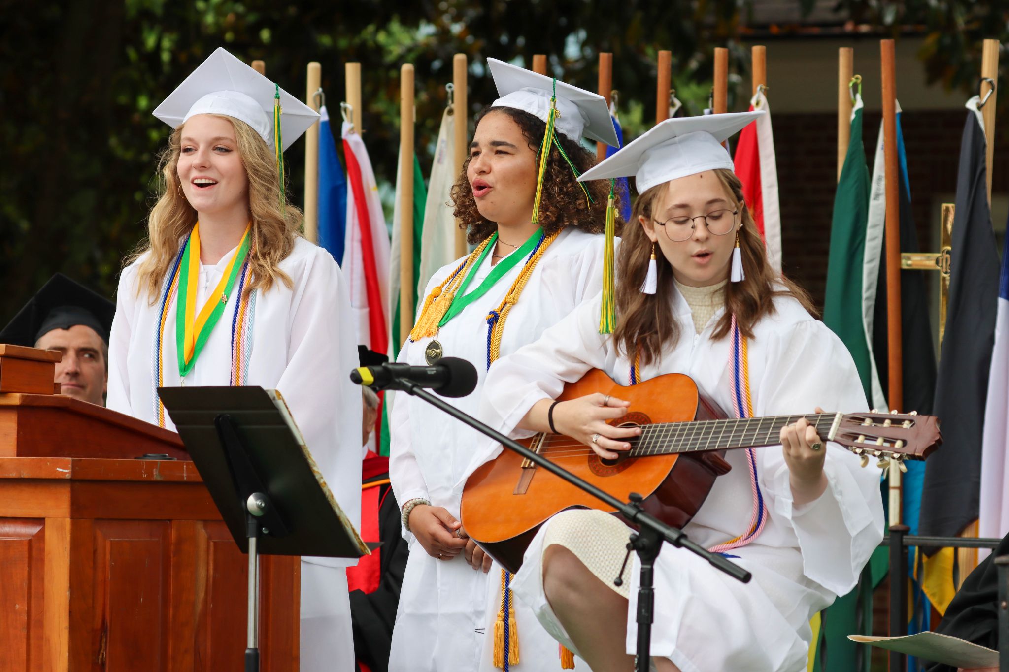 Special music, “The Blessing,” performed by Lucy Barry of Rabun Gap, GA, Eryn Blakeley of St. Micheal, Barbados, and Laura Grace Schmeichel of Palmetto, FL ended the graduation ceremony before the Class of 2022 graduates were officially announced as Rabun Gap alumni.