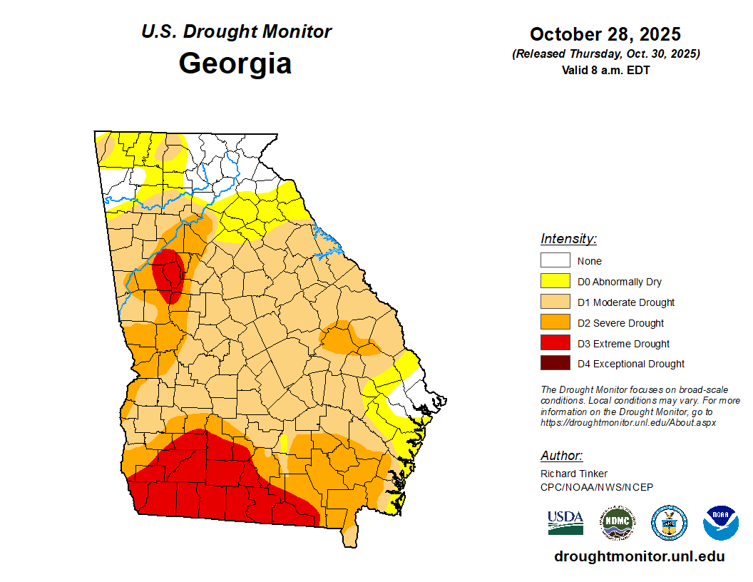 Drought conditions are still widespread across much of Georgia despite the recent rains. While some areas of the state have been removed from the designation, most still remain in at least a D0, or abnormally dry, drought.