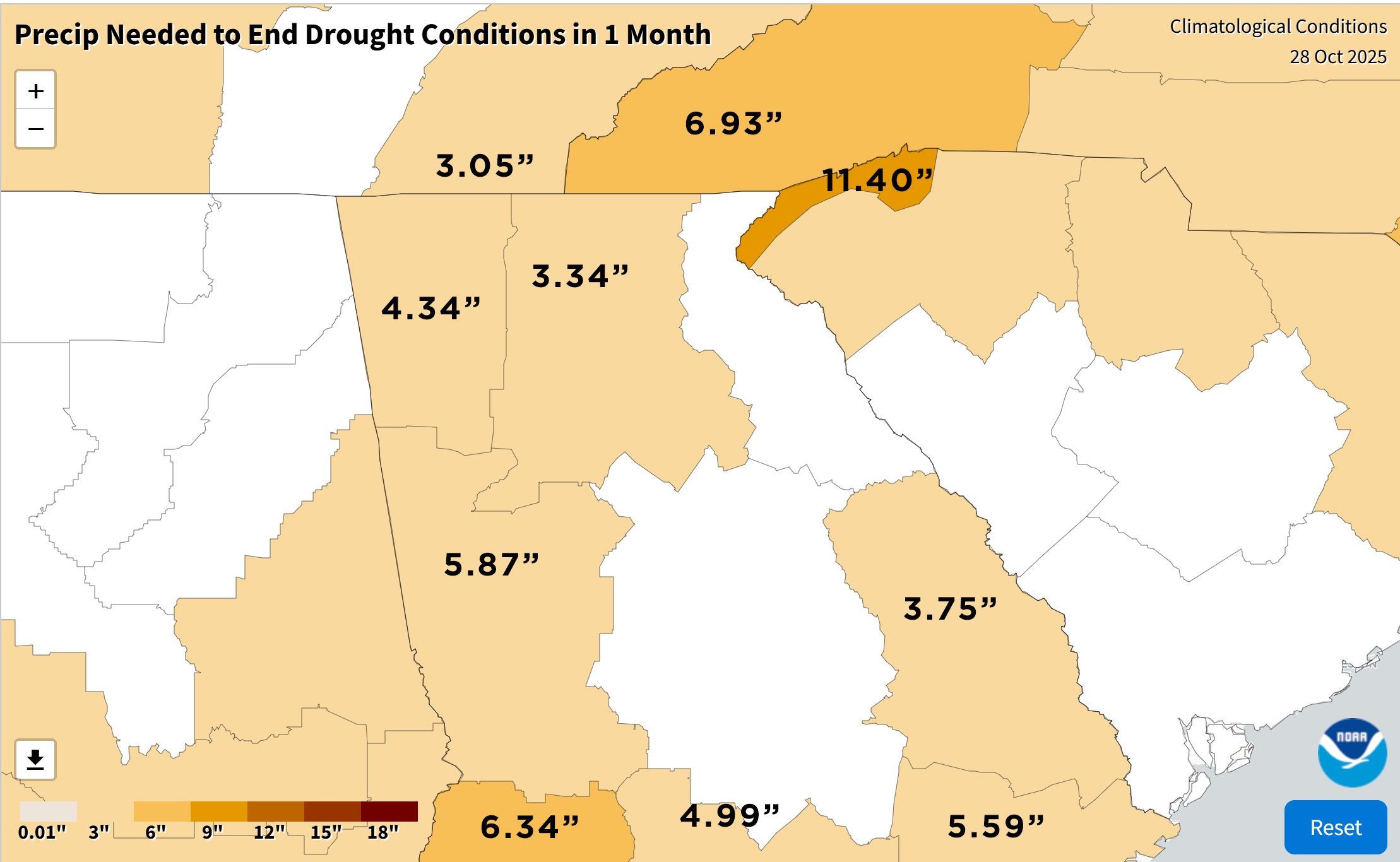 Rainfall deficits vary quite a bit across the state thanks to the somewhat patchy areas of higher totals, especially in the I-20 corridor. However, NOAA puts out a graphic each day that analyzes approximately how much rain is needed to erase the drought. These are done by climatological area and thus can vary quite a bit, but it is a good average and a good place to start. This does take into account some of the recent rains with the latest analysis released on 10/28. It is worth noting that they also define drought a bit differently than the drought monitor forecasters.