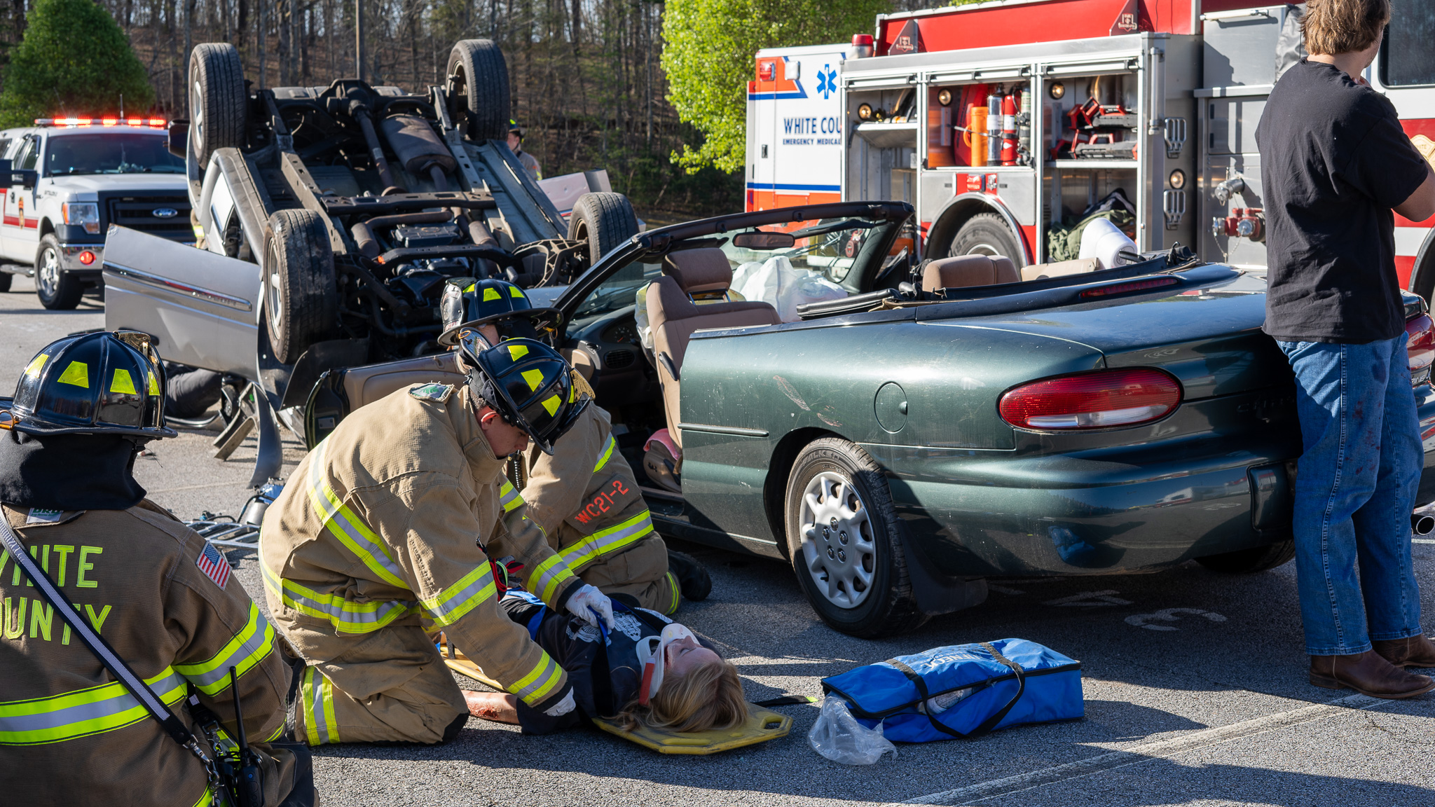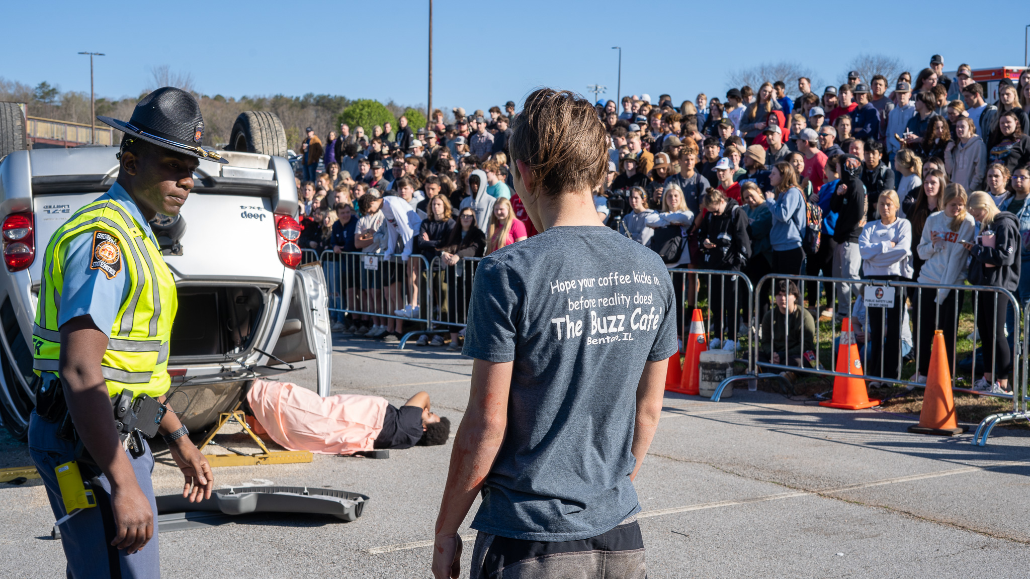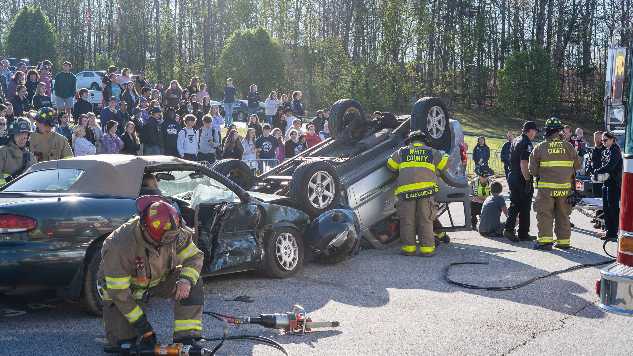 “I believe it is important for the students to see this type of exercise. This makes them aware of the consequences of distracted driving or driving under the influence,” says White County Fire Services Battalion Chief Josh Taylor.