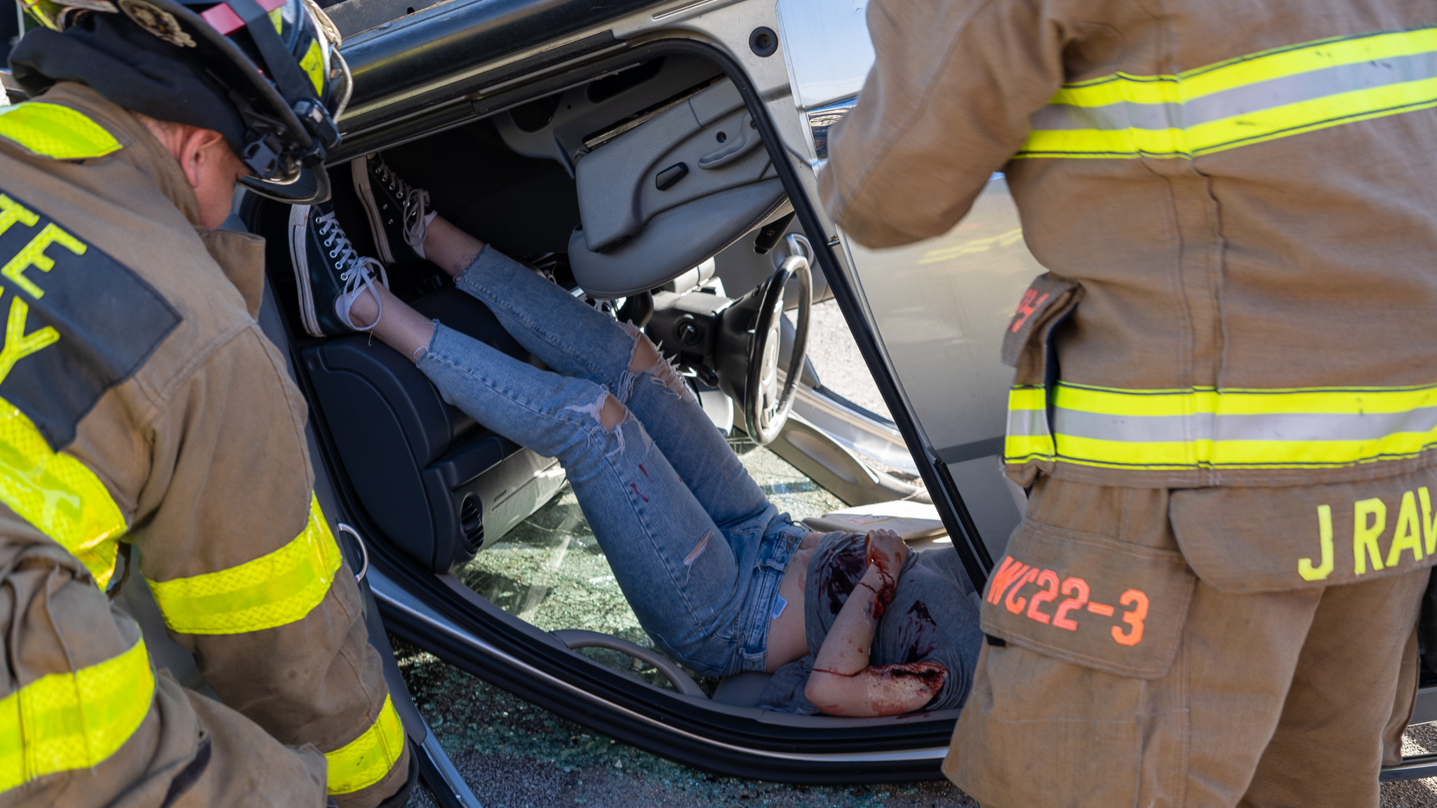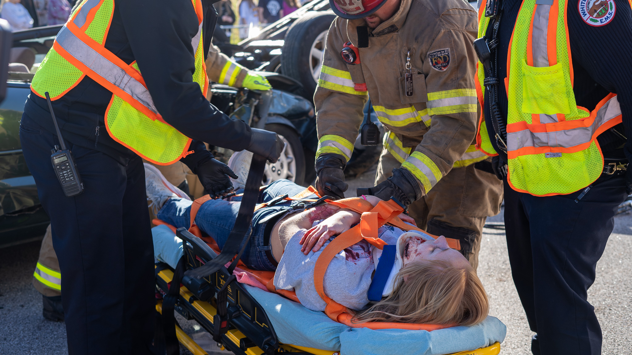 The high school partnered with local public safety agencies on Wednesday for a mock crash exercise. The scenario involved a head-on collision resulting in critical patients and a fatality. As part of the exercise, fire personnel extricated patients trapped in vehicles, and EMS workers assessed and treated ‘patients’ in the field before transporting them to hospitals.