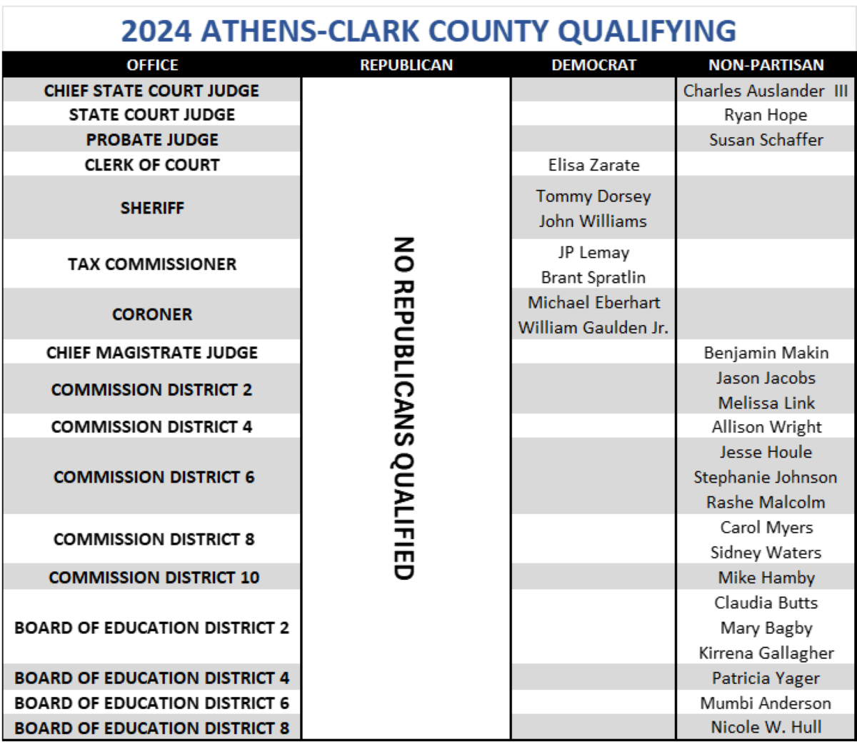 Athens-Clarke County is the only county in the northeast Georgia region to not have any Republicans qualify.